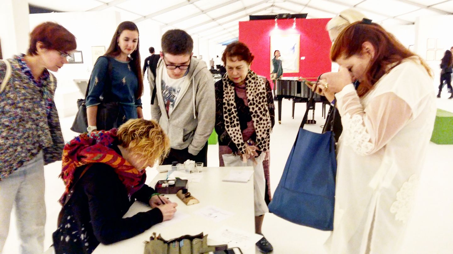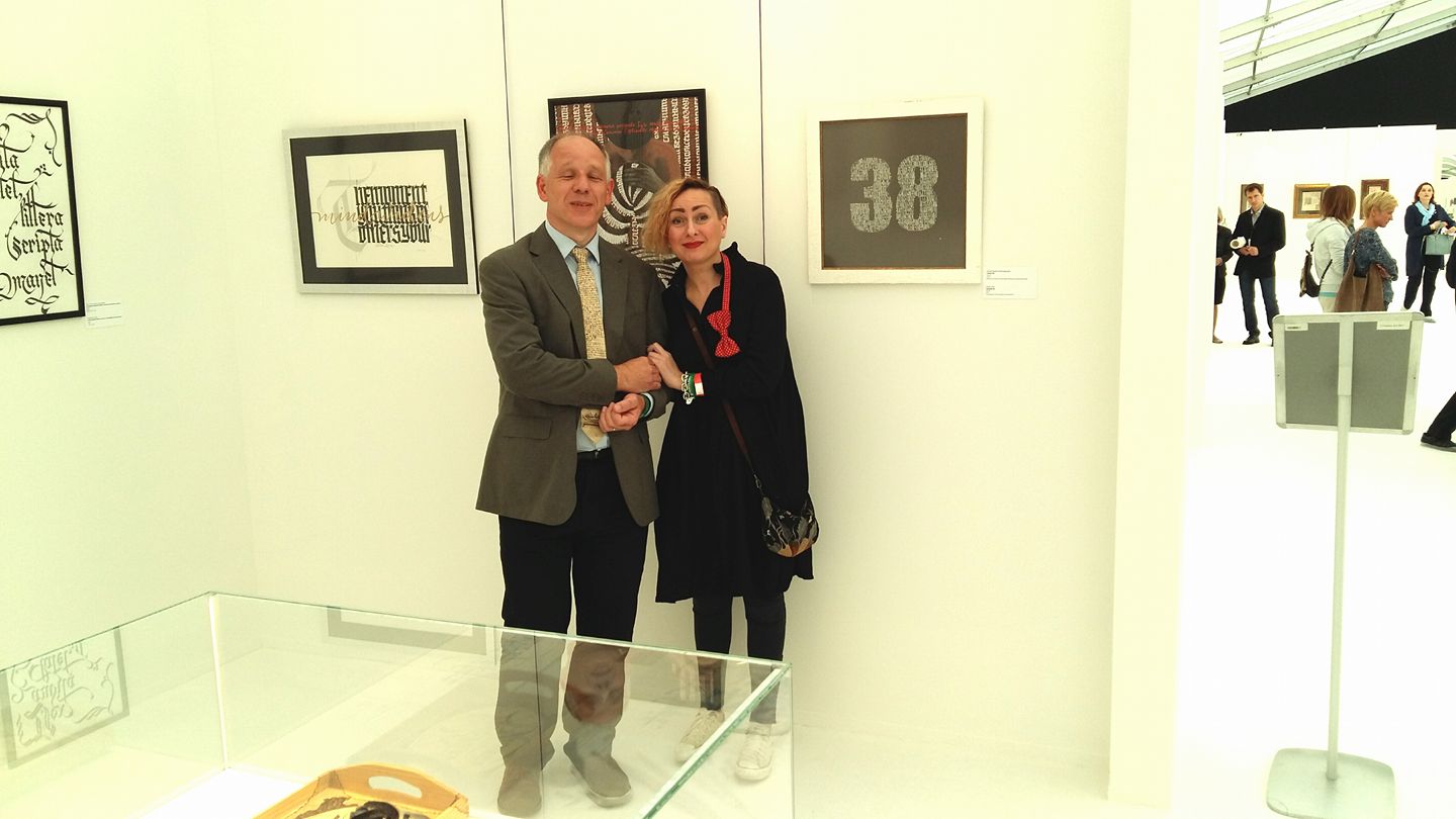 С Тимоти Ноудом, каллиграфом Ее Величества королевы Великобритании Елизаветы II, на Международной выставке в Москве в 2017 году у работы Арины Лаури