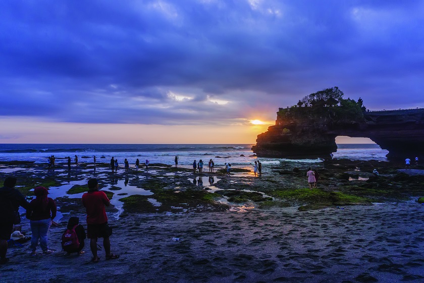 Бату Болонг. Храм, выполняющий функцию океанской крепости. Его стены защищают остров Бали от нашествия водных демонов. Для любителей пейзажных медитаций на побережье установлены скамейки, где можно посидеть и полюбоваться на закатное солнце, скрывающееся за стенами храма.