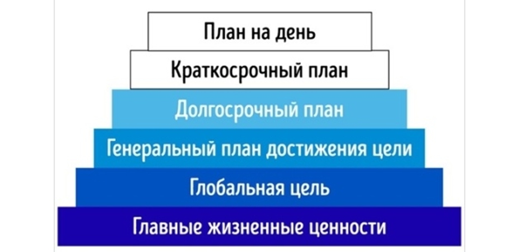 Главное правило пирамиды в том, что каждый последующий элемент прочно основывается на предыдущем, то есть на честном ответе конкретного человека на указанный вопрос. И уже затем, когда ответ дан, можно переходить к следующей ступени и в конце концов строить план на день согласно своим высшим и истинным интересам, то есть того, что вы хотите от жизни на самом деле.