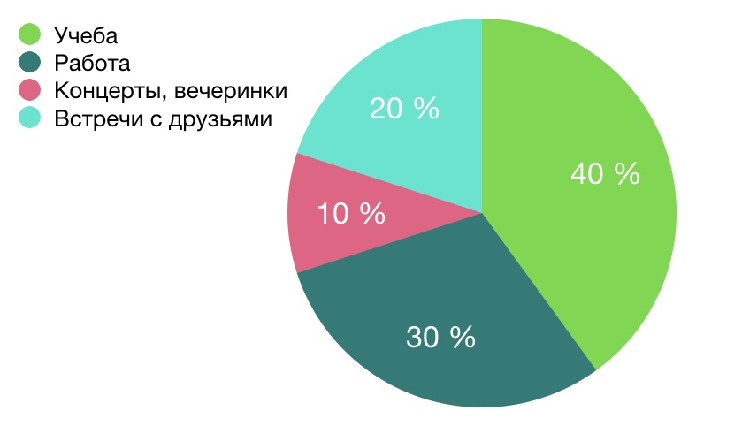 Чтобы ориентироваться было проще, составьте диаграмму занятости, в которой в процентном соотношении перечислены все сферы вашей жизни. Это может быть работа, учеба, повседневные дела, прогулки с детьми, занятия спортом, культурные мероприятия, встречи, вечеринки. Например, если девушка 50 % времени проводит на работе в офисе, где есть определенный дресс-код, то половина вещей в шкафу должны быть классическими, деловыми. Диаграмма помогает составить структуру гардероба, подходящую именно вам.