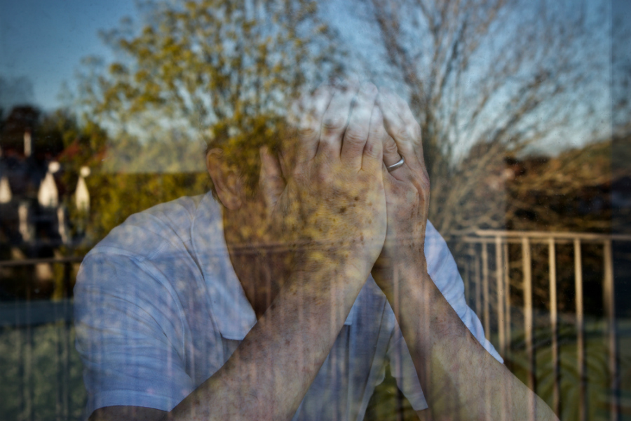 - Человек с дегенеративным заболеванием горюет о потере мобильности.