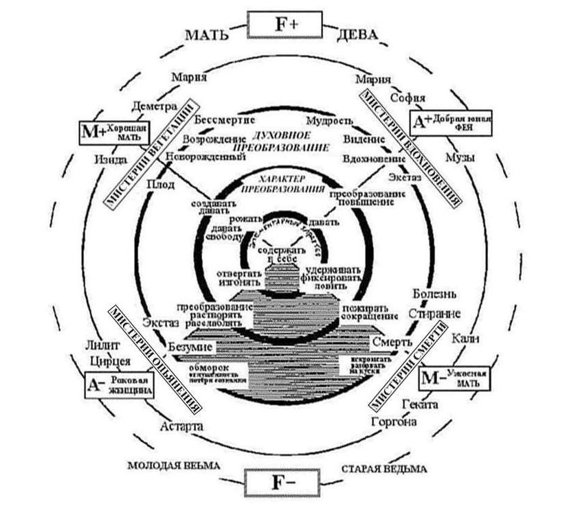 На языке юнгианской психологии это один из символов архетипа Великой Матери. Эрих Нойманн в книге «Архетип Великой Матери» дает подробную характеристику всем модусам архетипа. А я лишь напомню, что этот архетип состоит из четырех частей, две из которых молодые и две старые, умудренные опытом; две добрые и две темные, пожирающие.