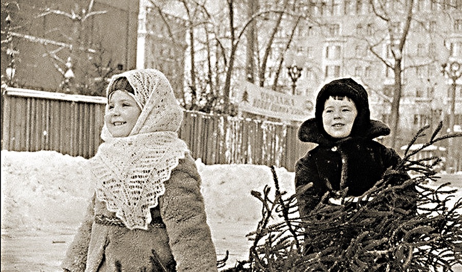 Зима, Москва, 80-е прошлого века, на площадке гуляют дети. Играют в снежки, лепят снеговиков, катаются с горок. Мамы стоят рядом, разговаривают. Выглядят они типично для того времени: