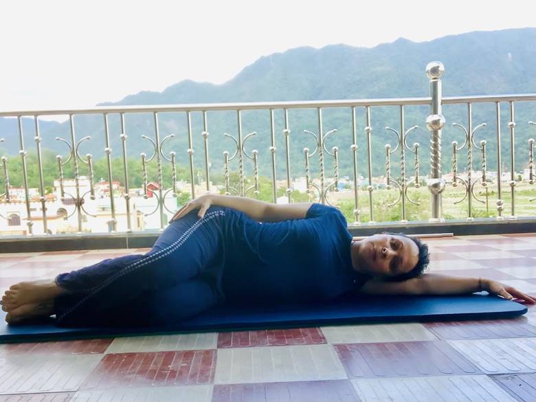 Затем повернитесь через живот на правый бок, останьтесь ещё на 21 цикл дыхания. После лягте на спину в Шавасану, снова останьтесь на 21 цикл дыхания.