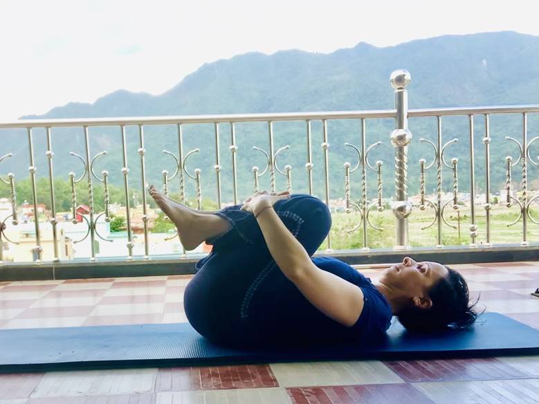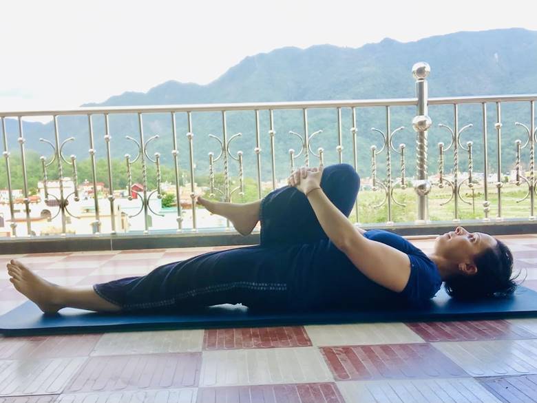 Начинаем с Супта Паванмуктанасаны или подтягивание коленей к груди.