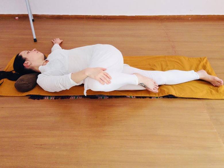 И в заключении повернитесь на левый бок в позу Будды, только теперь всего на 7 дыхательных циклов.