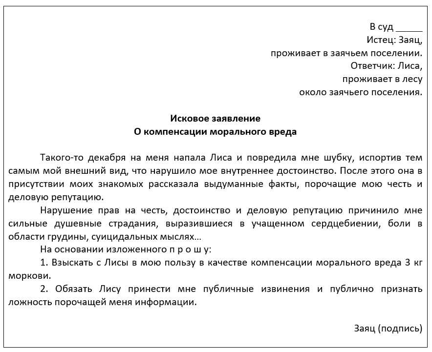 Если бы Зайцу пришлось писать исковое заявление в суд, то оно выглядело бы примерно так: