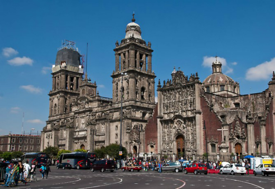 Центр города называется Сокало или Площадь конституции. Это самая большая площадь Латинской Америки и вторая по величине в мире. Как и на любой главной площади, здесь есть Кафедральный собор. Он тоже самый большой и старейший в Латинской Америке. Рядом с ним — археологический памятник Темпло Майор, или Главный храм древней ацтекской столицы Теночтитлан. Он был обнаружен случайно в 1978 году во время прокладки кабеля.