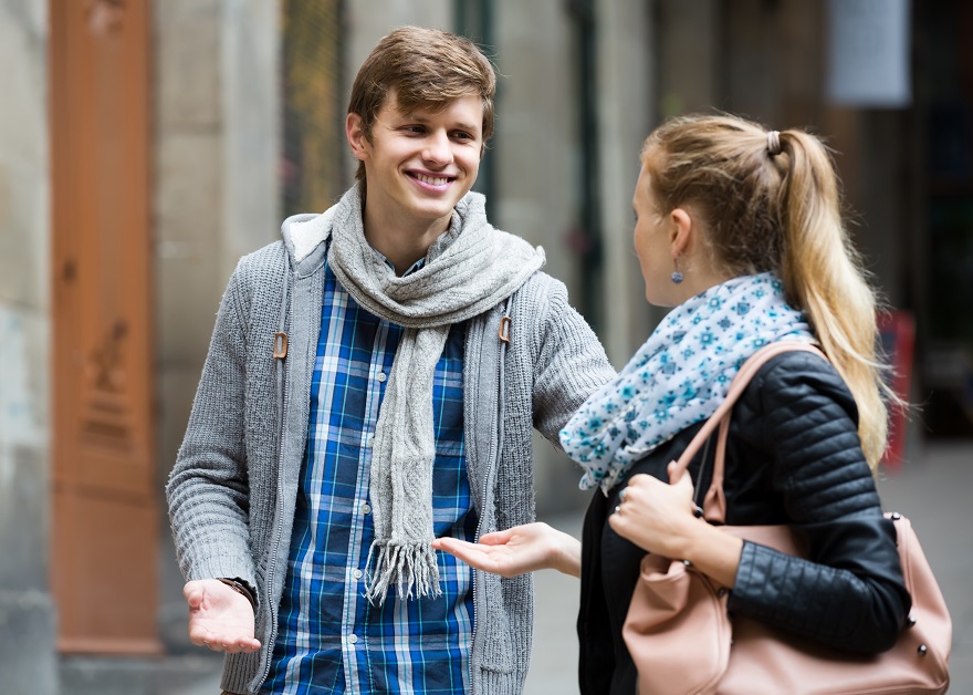 Итак, осанка. Открываю солнечное сплетение, отвожу плечи назад, расслабляю живот. Когда приближаюсь к возможному собеседнику, я улыбаюсь. И делаю глубокий выдох со звуком.