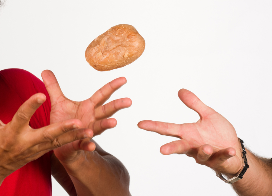 Родители программируют своих детей, конечно, неосознанно и тоже во многом вынужденно — они сами были в детстве запрограммированы, да и вся культура общества напичкана не самыми позитивными программами. Этот процесс передачи программ от поколения к поколению Бёрн остроумно назвал «перекидыванием горячей картошки» — вытащенную из углей картошку не удержать в руках и её хочется побыстрее кому-то перекинуть. К сожалению, этими другими чаще всего оказываются дети, из-за отсутствия жизненного опыта и собственного мировоззрения, а также из-за неразвитости многих функций психики.