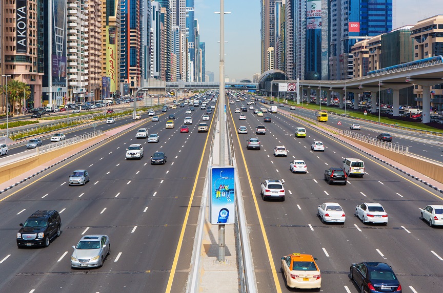 В Дубае много эстакад и автострад, въездов и выездов — без навигатора лучше не ездить. Интересно, что прямо в центре города есть участок платной дороги — салик. Каждая машина, которая проезжает по этому участку, должна иметь специальный стикер. При проезде под воротами салик с него автоматически считывается 4 дирхама ($1,1), зато никаких светофоров и пробок.