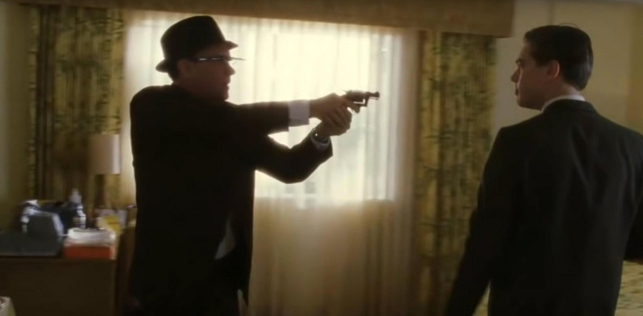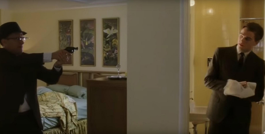 Закончим анализ фильма сценой, когда агент ФБР узнает, что мошенник, которого он преследует, находится в отеле. Он врывается в его номер, и мы наблюдаем их первую встречу.