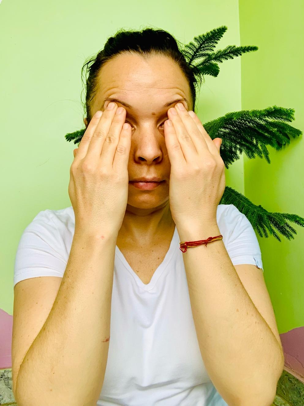 Регулярная практика этого упражнения скорректирует опустившиеся верхние веки и уменьшит морщины вокруг глаз. А ещё я использую эти движения при заложенном носе, головной боли и головокружении.