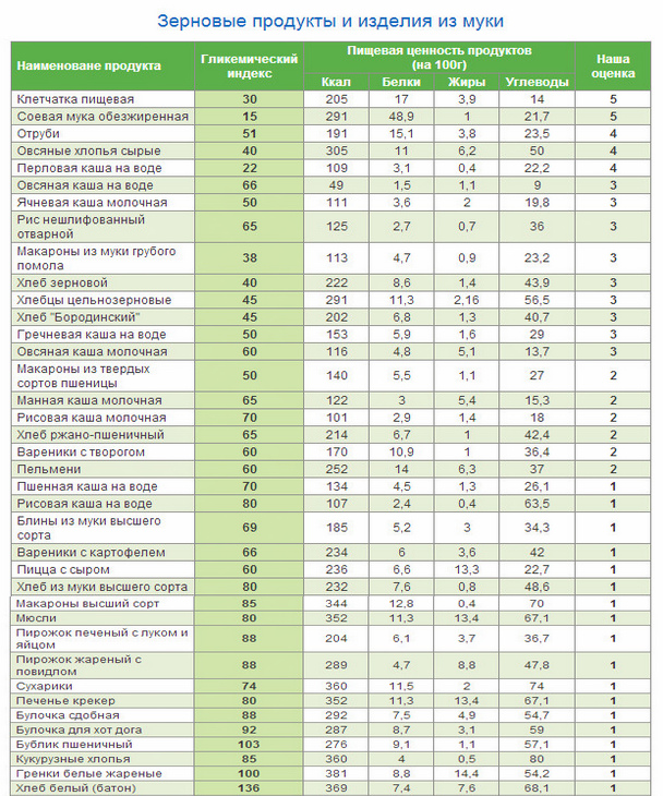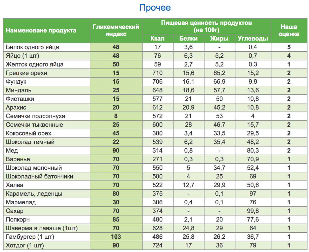 Грубо говоря, это значение, определяющее, с какой скоростью и сколько сахара всосется в кровь после потребления продукта. Как вы понимаете, с этим надо считаться, так как насытившийся организм, принимающий пищу с углеводами, однозначно создает копилки жиров и худеть не будет. Сейчас приведу таблицу ГИ продуктов, а вы возьмите листочек бумаги и попробуйте посчитать, сколько углеводов за сегодня вместил хотя бы ваш завтрак.