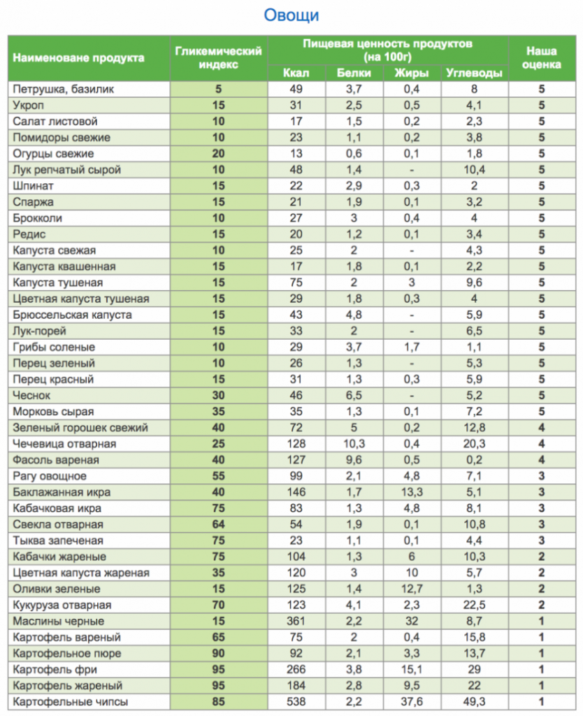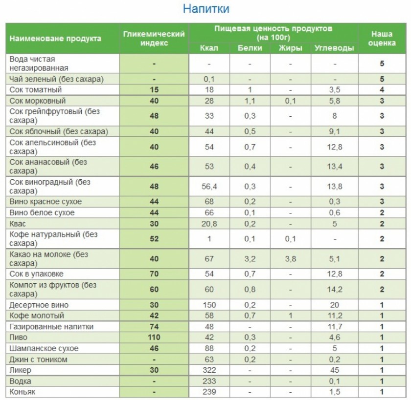 - Продукты с ГИ выше 40 надо исключить или хотя бы постараться ограничить.