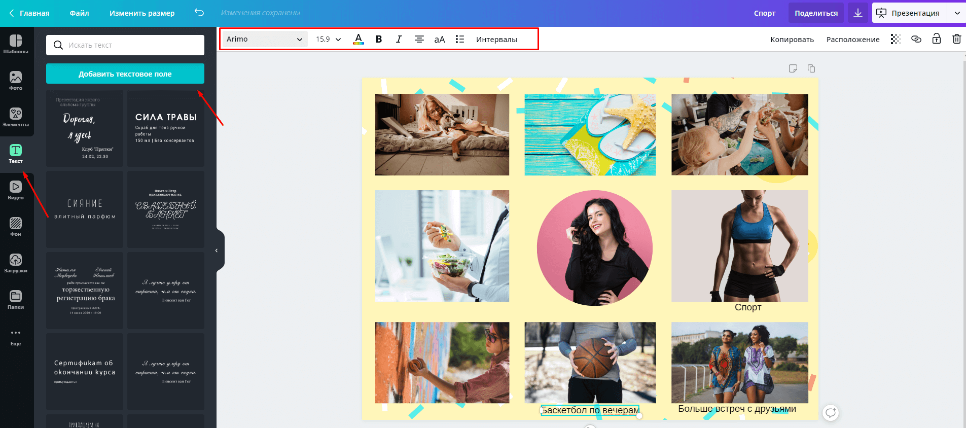 Отредактировать надпись можно также при помощи инструментов на верхней панели — они появятся при наборе текста вами. Соблюдайте один шрифт на всю карту желаний. Также следите, чтобы слова легко читались, так как основная идея в том, чтобы они попадались вам на глаза как можно чаще, а значит, могли бы быть легко различимы.