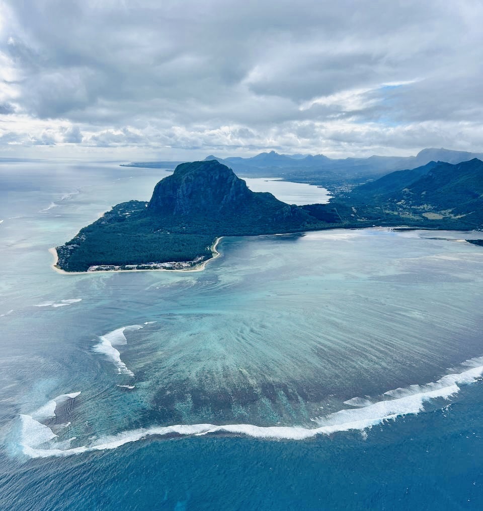 - Вертолетная экскурсия: полет над знаменитым подводным водопадом — визитной карточкой Маврикия в юго-западной части Маврикия, недалеко от полуострова Ле Морн. Также с высоты птичьего полета, вы можете полюбоваться цветными песками и водопадом Шамарель.