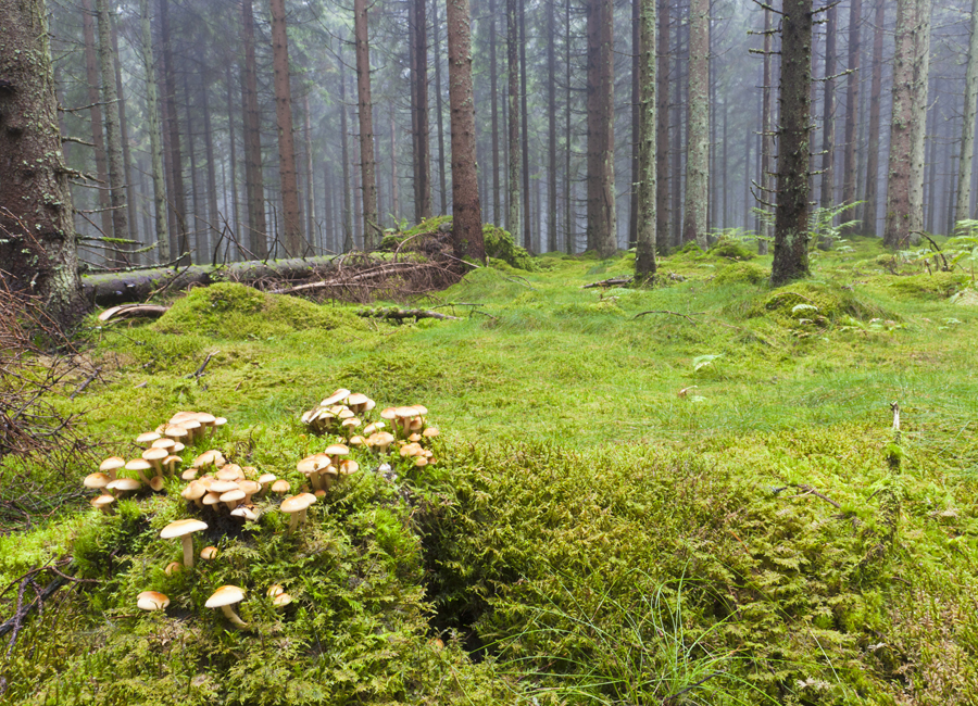 В наших лесах все столь же необыкновенно. Несколько лет назад ученые обнаружили, что корни деревьев продолжаются грибами, микоризами. Они позволяют деревьям проникать дальше и глубже, эффективнее улавливать воду и питательные вещества. Взамен дерево, которое занимается фотосинтезом, предлагает грибам глюкозу.