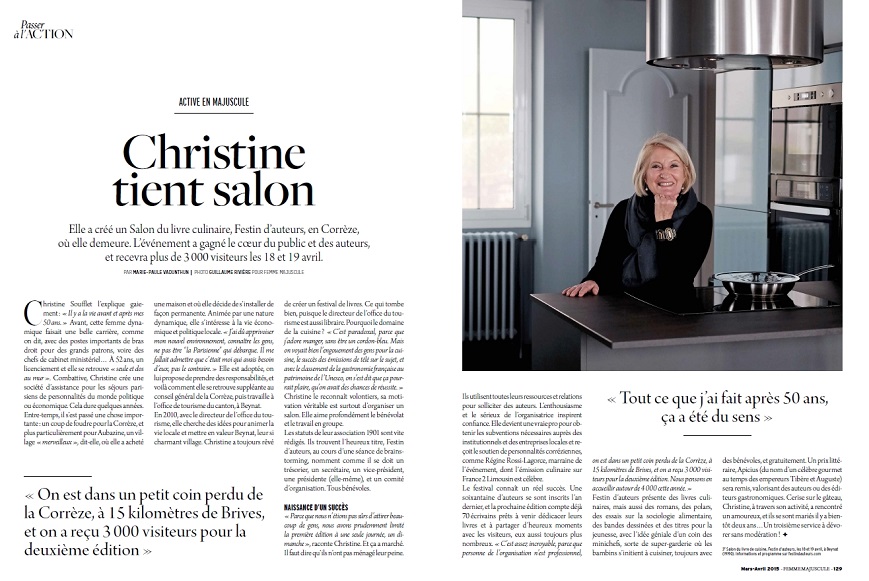 В маленькой деревне, где она сейчас живет, Кристин Суффле организовала Салон кулинарной книги, настоящий «пир писателей». Событие завоевало сердца публики и авторов. Ежегодно за два дня в апреле салон принимает около 3000 посетителей.